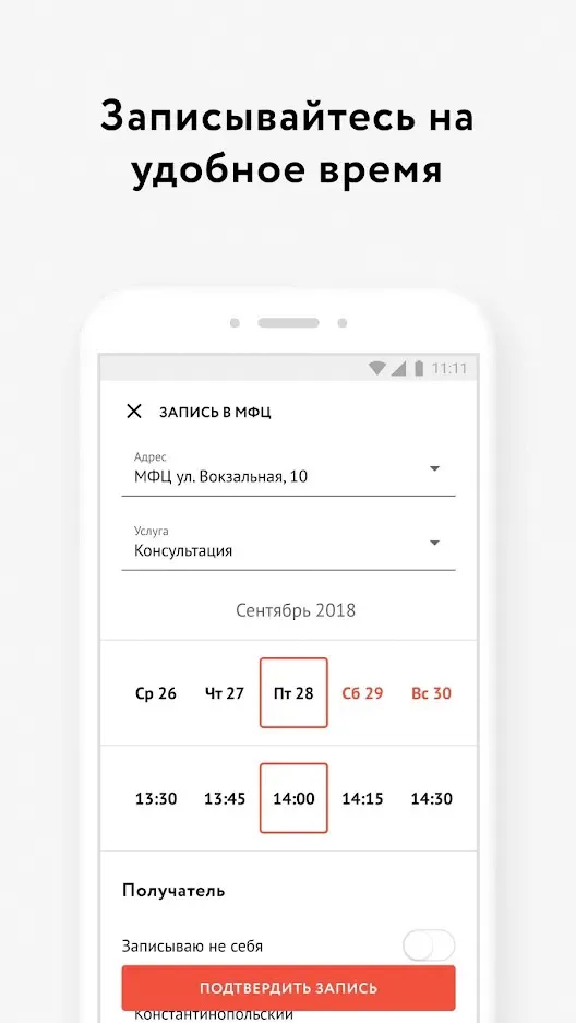 - ✅ 📅 Запись в МФЦ — доступна более чем в 40 регионах России, включая услуги УФМС, ПФР, ФНС и Росреестра