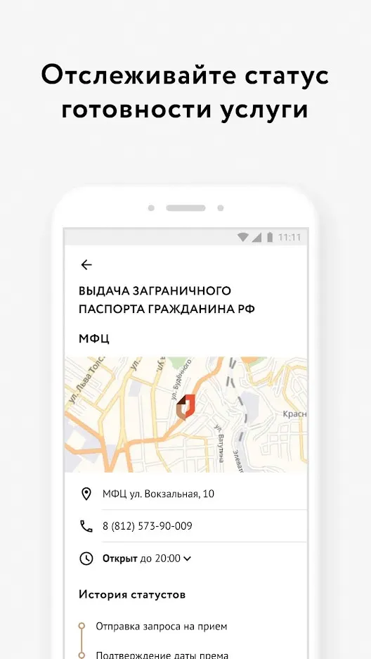- ✅ 📊 Отслеживание статуса — мониторинг готовности услуги по номеру дела в реальном времени